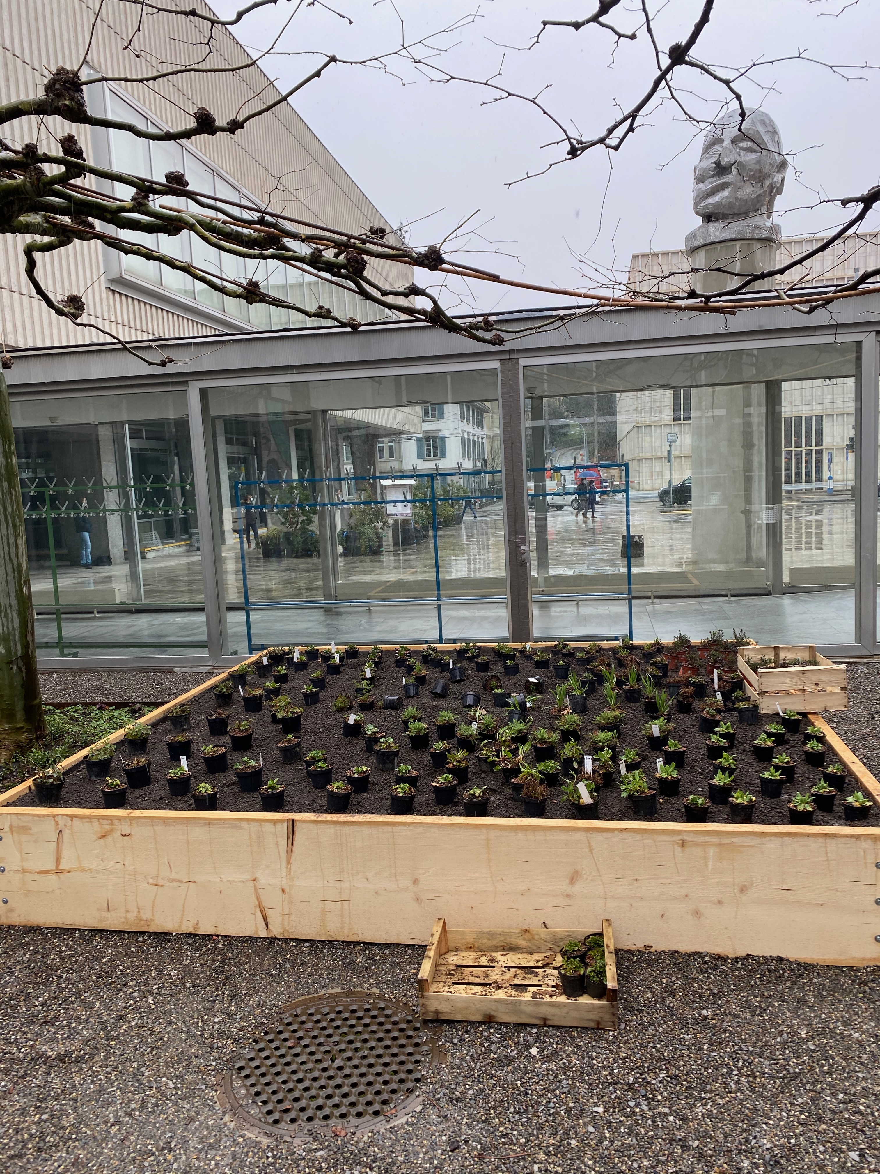 Maurice Maggi mit seinem «Naschgarten» im Miró-Innenhof, Kunsthaus Zürich, 2021, Foto © Sandra Gianfreda